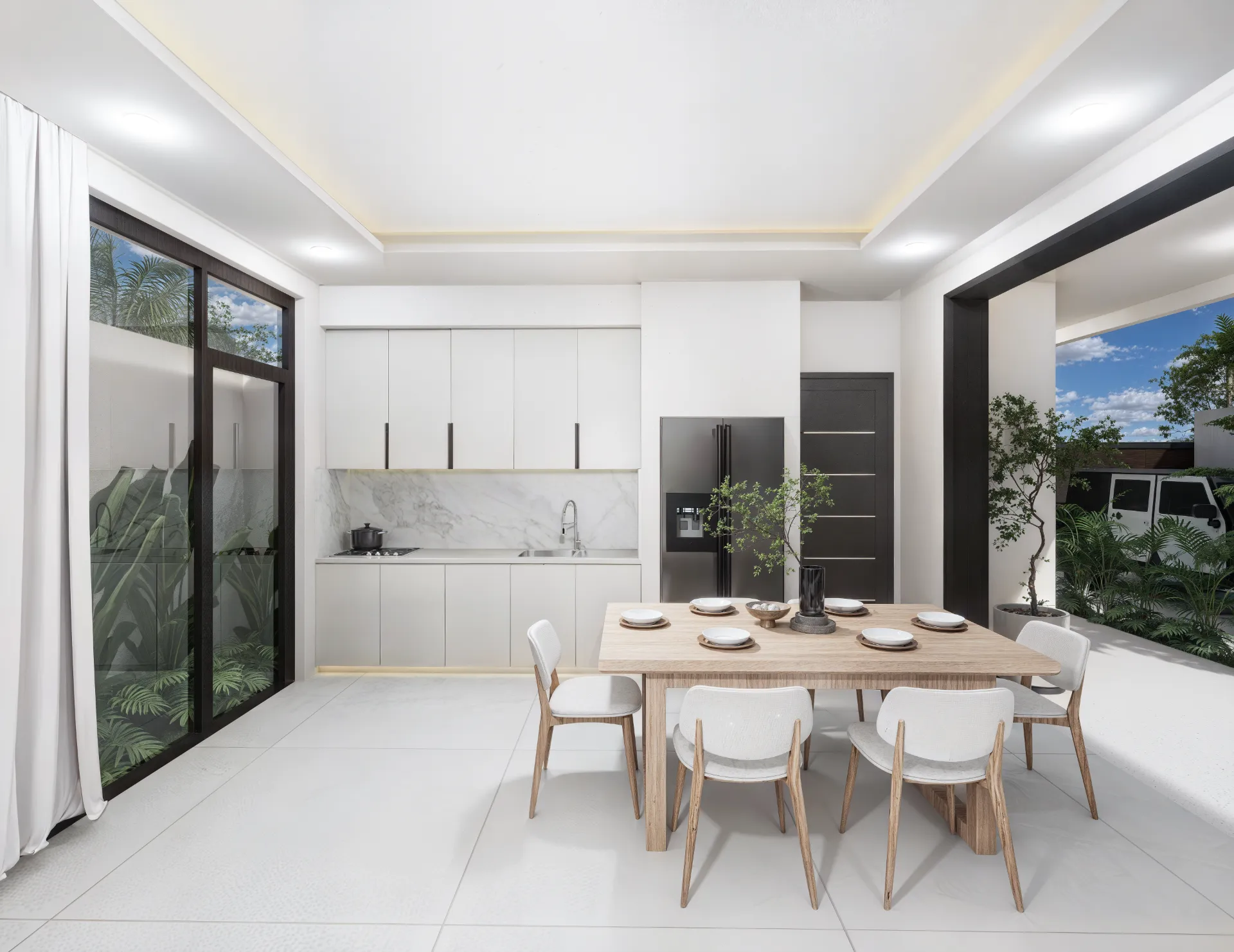 The architectural design of Villa Lera and Villa Arin seamlessly blends modern aesthetics with traditional influences, creating a harmonious living space that is both functional and visually stunning. Each villa features an open-concept layout, maximizing natural light and promoting airflow, ensuring a comfortable environment year-round.